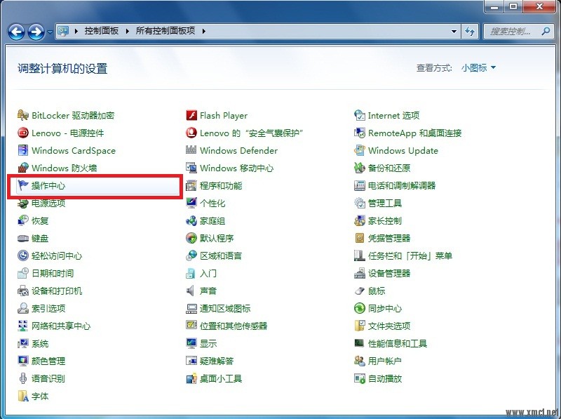 打开控制面板,查看方式选择“小图标”
